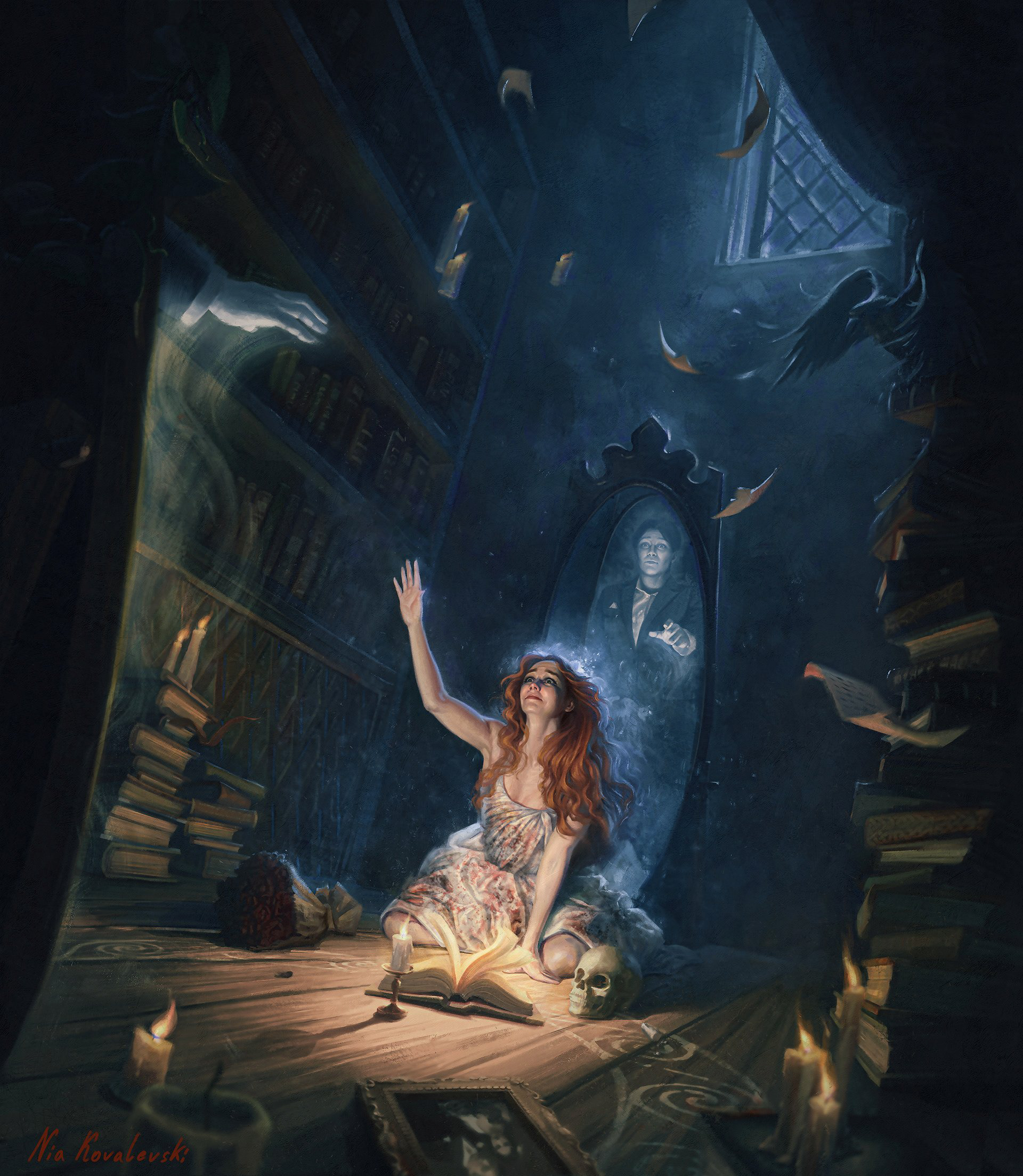 A Halloween illustration about a fiancée who lost her lover after the wedding and turned to dark magic to bring him back.
